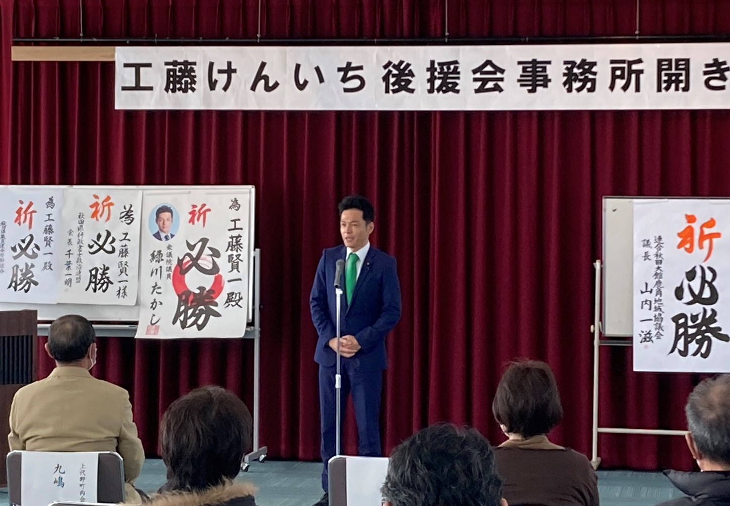 3月4日(土)大館市労働福祉会館において、工藤けんいち後援会の事務所開きを開催いたしました。